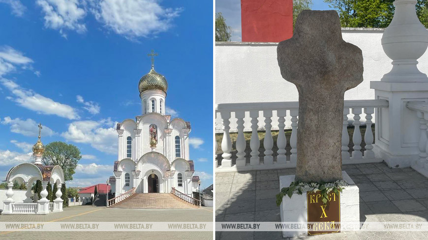 Место намоленное, икон чудотворных в небольшой церкви - много. Большой каменный крест X века среди рисованных образов кажется сначала чужеродным, но по-доброму одухотворяет его, на мой взгляд, укрывающий святыню расписной рушник. Солнечные лучи не попадают на камень, поэтому при прикосновении он будто обжигает холодом, но только на секунду. Ваша рука передает ему свое тепло, и он, кажется, откликается. Раньше здесь стояли два каменных исполина, но другой перенесли в Кафедральный собор святителей Кирилла и Лаврентия Туровских. Это - вторая наша остановка.