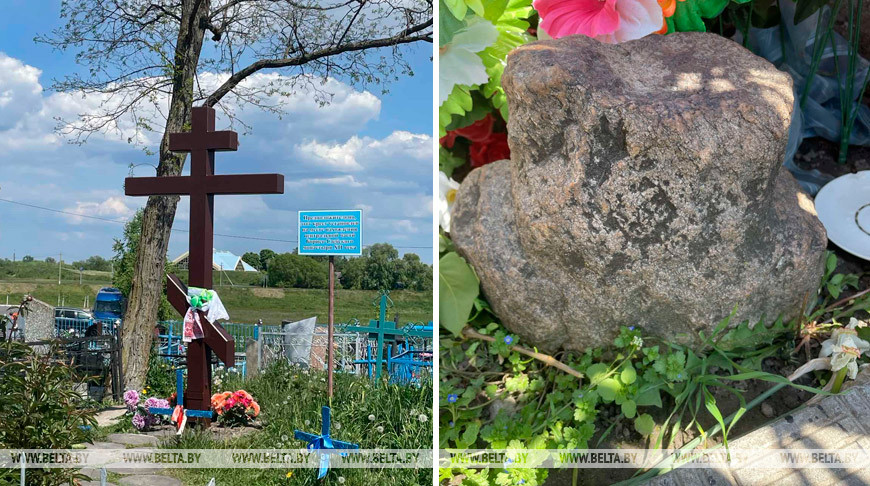Сюда мы приехали, чтобы увидеть, как могут расти каменные кресты. Эта достопримечательность входит во все туристические маршруты, поэтому для подсказки при входе на кладбище стоит указатель, как найти это чудо. Да и без него видно то самое место. Посреди небольшого погоста находится навес, украшенный разноцветными лентами. К нему ведет дорожка. По ней лучше идти медленно, чтобы не пропустить еще одно каменное чудо. Один из крестов находится под навесом, второй, что только выбивается из-под земли, притаился у одной оградки.