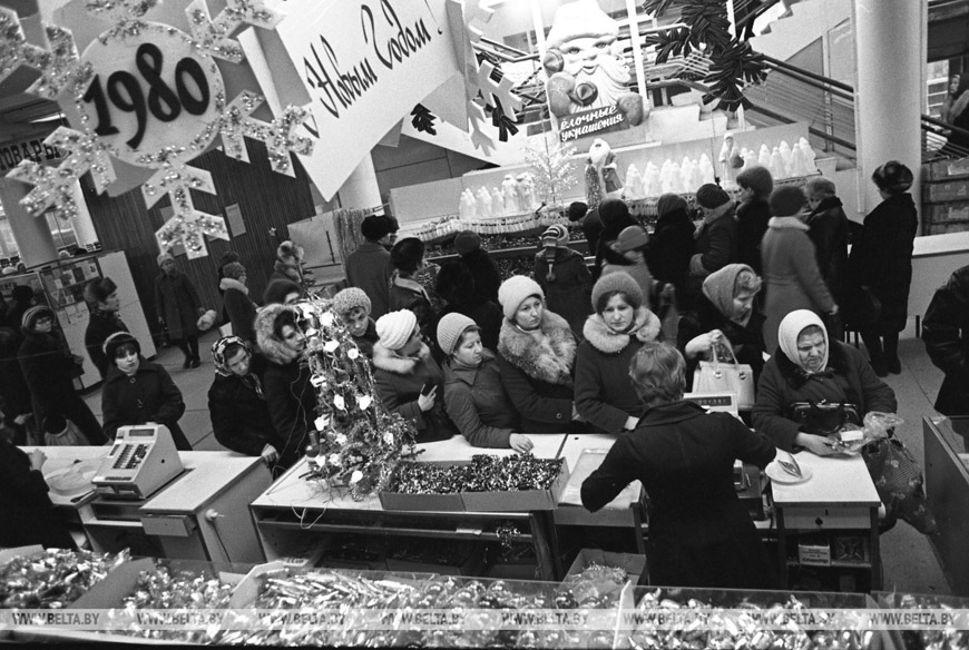 19 декабря 1980 года. В отделе елочных украшений Центрального универмага "Минск" (ЦУМ). Фото Евгения Козюли.