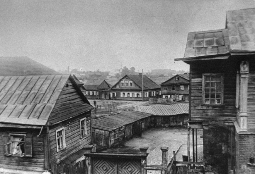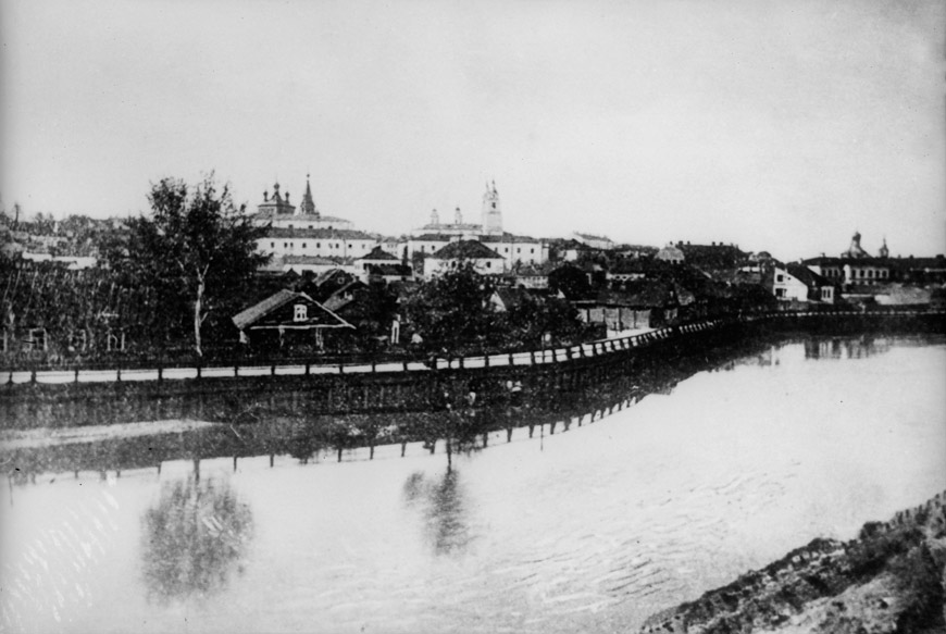 Вид на Татарскую слободу с Замковой горы. Она занимала северо-западную часть Минска, район современных улиц Димитрова, Мельникайте, Заславской, частично - проспекта Победителей. Фоторепродукция Евгения Козюли