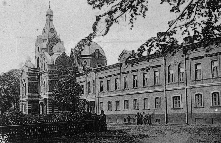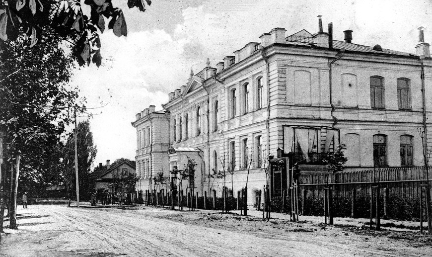Коммерческое училище на Васильевском переулке, находилось недалеко от современного Дома правительства на площади Независимости