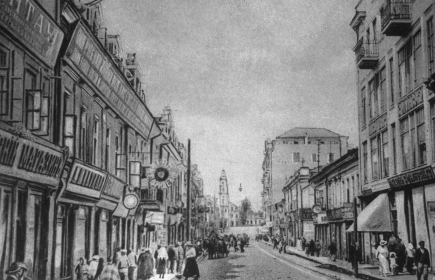 Вид на Захарьевскую улицу со стороны Александровского сквера (ныне перекресток улицы Энгельса и проспекта Независимости)