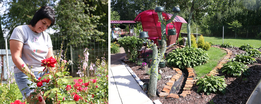 Раньше семья Санько проживала в общежитии, и даже там любительницу цветов не останавливали скромные площади: вся комната и коридор были уставлены благоухающими растениями, за которыми Наталья очень тщательно ухаживала. Затем семья переехала сюда, в квартиру мужа на улицу Зеленую. Здесь, на приусадебном участке, простора для реализации флористических идей в разы больше, но со временем семья взяла еще три сотки в аренду на десять лет!