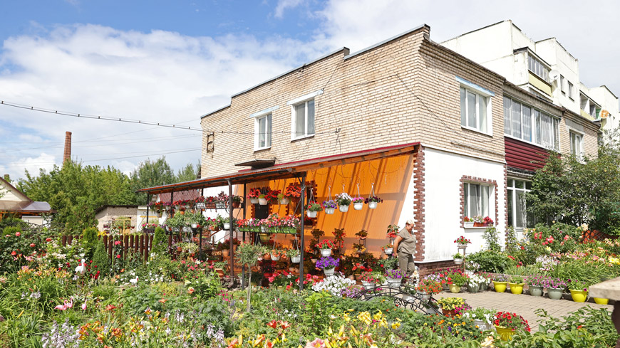 В Березино и зеленые оазисы не редкость: климат позволяет. Другое дело, что есть среди них и диковинные. Может, не чудо света, но тоже достойно восторженных отзывов. Рукотворные и красочные - просто глаз не отвести! Именно такой довелось увидеть во время командировки.В условиях мегаполиса возле многоэтажного дома можно, конечно, разбить клумбу, но когда цветоводство - твое многолетнее увлечение, когда у тебя и время есть, и место позволяет, тогда из сотен горшечных культур вырастет… целый цветочный сад!