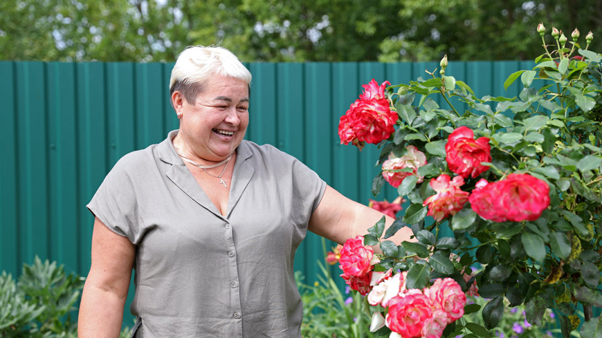 Увлечение Натальи Санько давно вышло за границы придомового участка. Некоторые из красивоцветущих растений перекочевали благодаря ей на клумбу возле Березинского РЭС участка "Энергосбыт", где, кстати, она работает вместе с сыном. Виталий трудится электромонтером в бригаде по ремонту и техническому обслуживанию электрических сетей района, она - инженер.