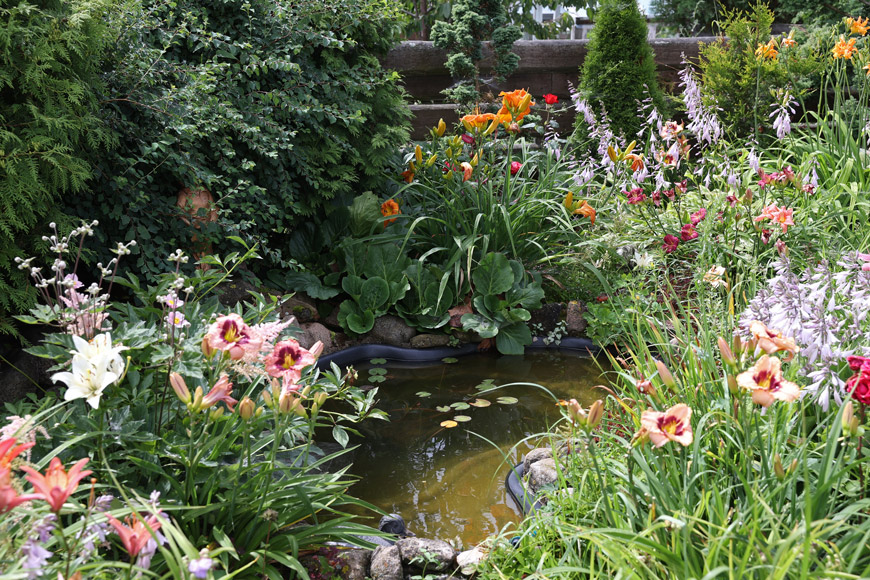 Экотропа протяженностью 1100 метров находится в черте городаЧего только нет на этой придомовой территории! Вот два небольших пруда, в одном живут и рыбы, и раки. Здесь множество цветочных композиций. Высажено все компактно, есть ощущение, в деле использован не то что каждый квадратный метр - каждый сантиметр. Хозяйка отмечает, что на этом зеленом оазисе произрастает лилейников разновидностей под 50, а еще ничуть не меньше хост, около 40 сортов пионов, более 80 - роз и гортензий. За углом дома она разбила "школку" для подрастающих плодовых деревьев, а также мини-огородик для душистых растений. Лаванда сейчас в самом цвету. Десятиметровый отапливаемый парник ежегодно используется весной для того, чтобы подрастить рассаду однолетних цветов, летом же здесь зреют помидоры.