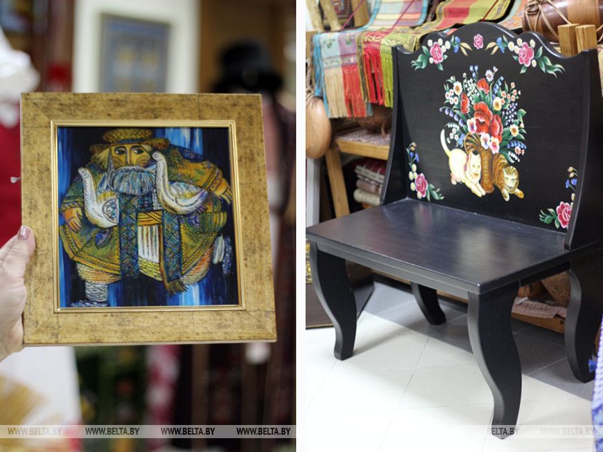 Особое место в коллекции "Скарбницы" занимает роспись на ткани, говорит Ольга Федоровна:- Грузинское наивное искусство приобрело мировую известность благодаря Нико Пиросмани, а в нашей культуре оно широко представлено маляванками. Они украшали стены большинства деревенских домов относительно недавно, в 50-70-х годах прошлого века. На полотнах изображали экзотических животных и цветы. Сегодня мы делаем реконструкции маляванок по экспозиционным материалам примерно таким же способом, как и наши предки: натягиваем ткань на подрамник, грунтуем, расписываем. Картины обычно делали больших размеров, мы же на опыте убедились, что такой формат подходит для этого стиля. Он будет прекрасно смотреться в современном интерьере, неся культурный код белорусов. Это своеобразное художественное письмо из прошлого в будущее, которое рассказывает о том, кто мы есть.