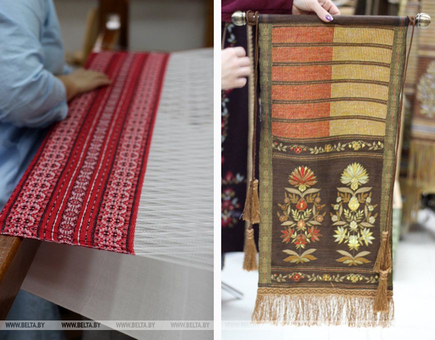 Декоративные пояса по мотивам знаменитых слуцких, воспетых Максимом Богдановичем, начали делать в "Скарбнице" в технике четырехремизного ткачества с 2013 года. Их отличительные особенности: две лицевые стороны, тонкое тканое полотно. И хотя старинная техника создания поясов утрачена, мастерам удалось достигнуть того же эффекта новыми современными способами.