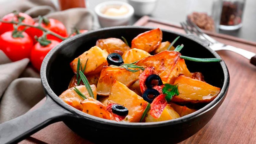 Рецепт нежного ароматного картофеля, запеченного с томатами и зелеными оливками. Это блюдо можно употреблять как самостоятельное постное. Также оно может стать изысканным гарниром к мясу или рыбе.