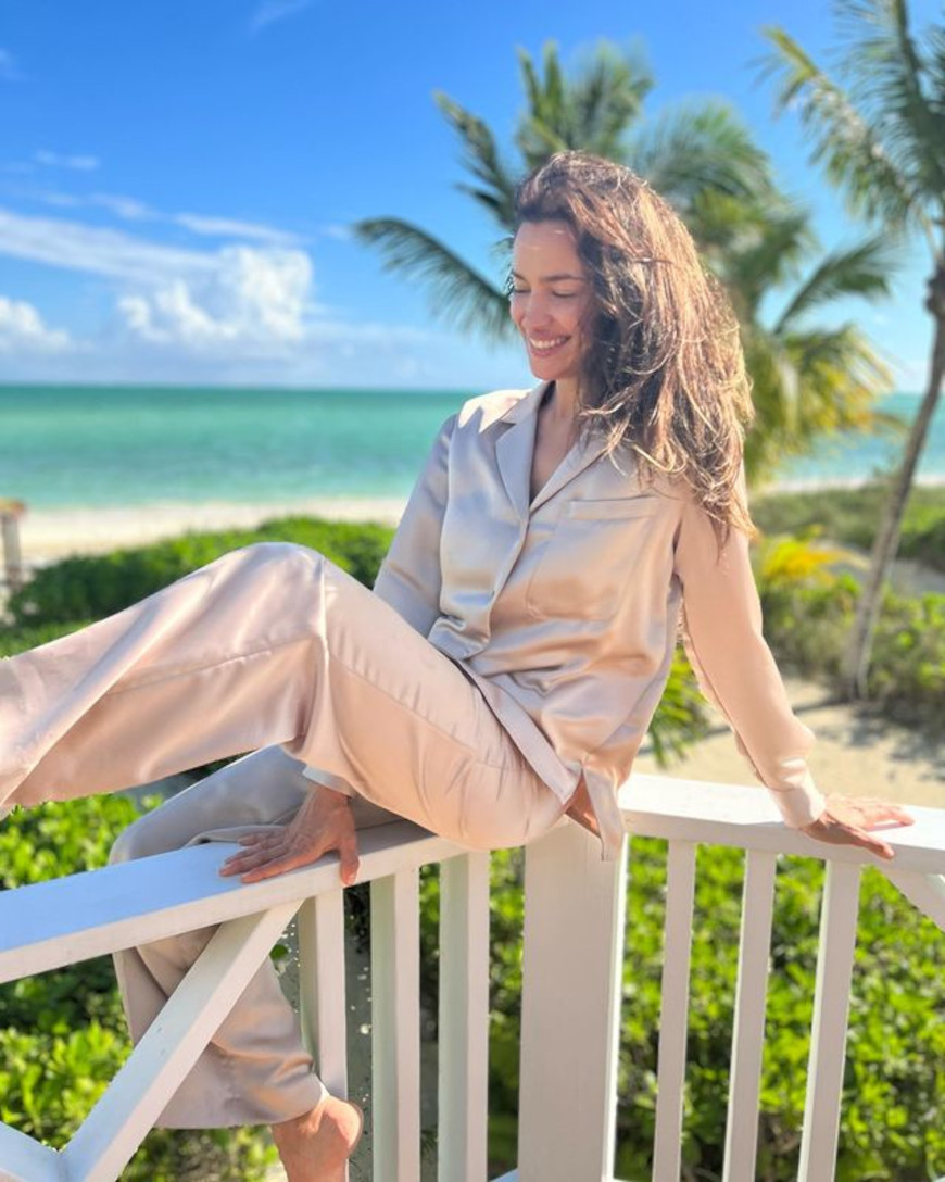 Звезда подиумов отправилась на каникулы поближе к океану и сразу же решилась поделиться атмосферным снимком в Instagram. Для этого Ирина Шейк примерила шелковую пижаму светлого цвета, а после удобно разместилась на перилах балкона. Новое фото получилось атмосферным и нежным, что и отметили многочисленные поклонники знаменитости.