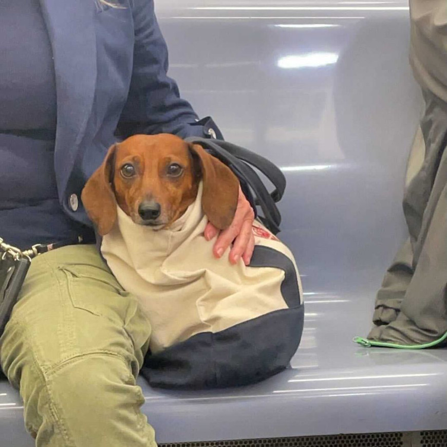 Проблема заключается в том, что собаки не очень рады гулять по магазинам или кататься в метро, поэтому на помощь человеку приходит сумка. Решение простое и элегантное, однако улыбку и слезы от смеха вызывает другое – внешний вид сумчатых песиков.