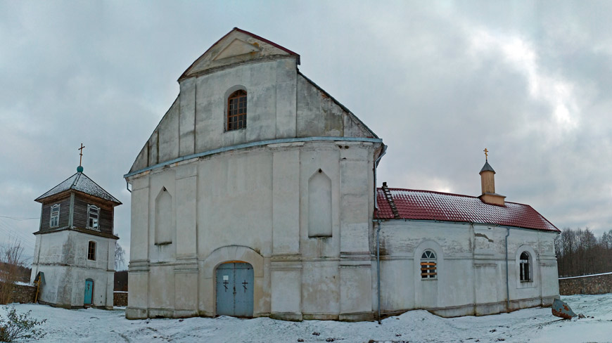 Первый католический храм здесь появился еще в самом начале XVI века при Александре Ягеллончике. Был он деревянным и сгорел во время русско-польской войны в следующем столетии. Затем был еще один, тоже не устоявший перед жизненными перипетиями. Каменный костел на этом месте начали строить в 1800 году, и работы растянулись почти на полвека. Впрочем, католическим новый храм пробыл недолго: во второй половине XIX века здание передали православным. В советское время он вообще не действовал и постепенно разрушался, но в середине 90-х годов прошлого века Успенский храм начали реставрировать.Из Плебани едем в Радошковичи, это около 13 км по трассе.