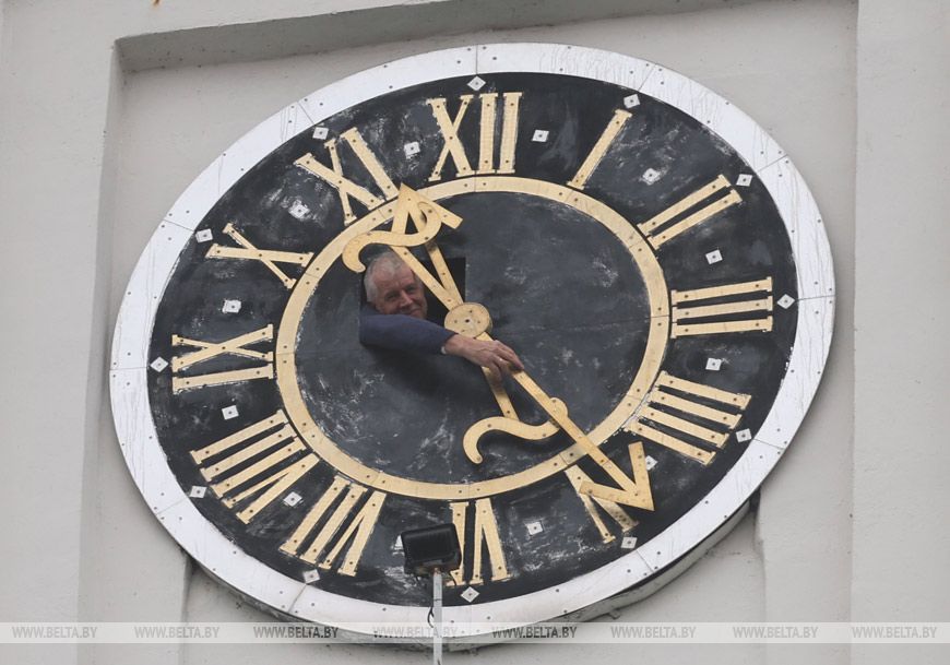 Экстремальный процесс: подкручивать стрелки часов приходится через маленькое окошко в циферблатеСердце Гродно
