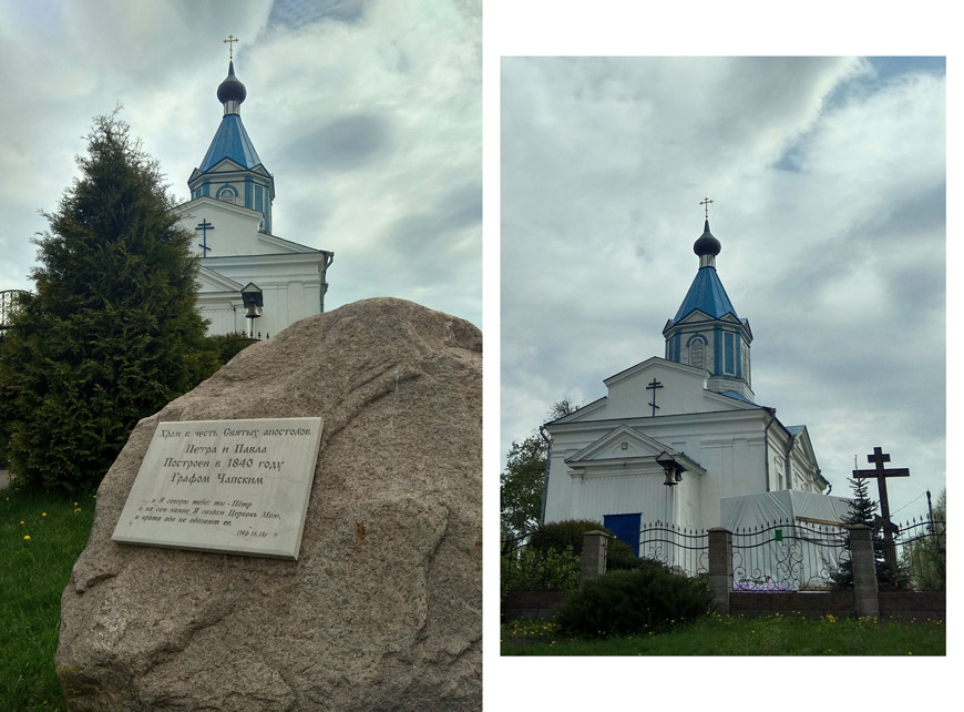 На противоположном берегу озера виднеется церковь. Ее история заслуживает внимания. В начале XVIII века Радзивиллы построили деревянный православный храм. Позже на его месте появилась униатская Петропавловская церковь. А еще позже Эмерик Чапский выкупил проект храма, созданный знаменитым придворным архитектором Константином Тоном - автором проекта храма Христа Спасителя и Большого Кремлевского дворца в Москве. Так, в 1858 году на пожертвования Чапского и сборы прихожан здесь построили церковь Святого Николая.