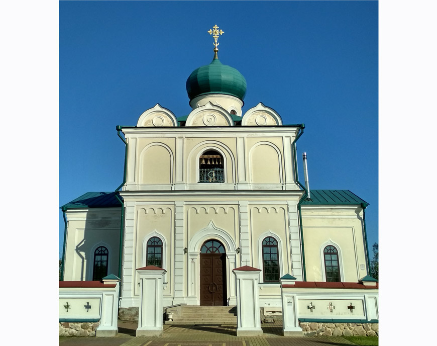 Так как церковь строили после перевода белорусских униатов в православие, ее облик отвечал общим тенденциям строительства храмов Российской Империи - ретроспективно-русский стиль, воссоздающий традиции русского зодчества XV-XVII веков. Это можно увидеть в сочетании фронтона и луковичного купола. У стен храма погребен протоиерей Петр Свирский, дед блаженной Валентины Минской.