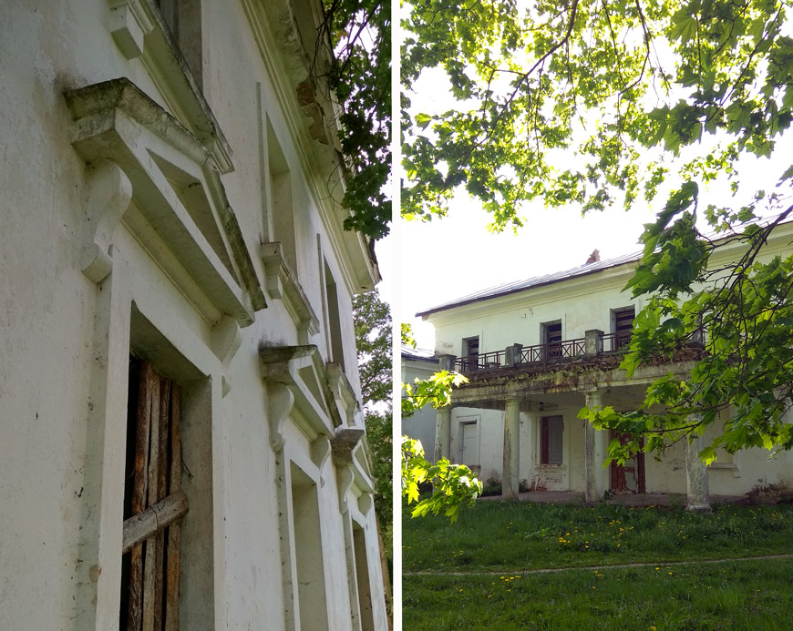 В двух километрах от усадебного комплекса расположился хозяйственный двор Хрептовичей. Мимо точно не проедете, ведь он напоминает развалины… средневекового замка. Секрет прост: строения возводили во второй половине XIX века в замковом стиле. Здесь производили сыр по швейцарским технологиям, разводили лошадей, работали маслобойня, лесопилка и другие производства. К сегодняшнему дню сохранилось несколько башен, руины конюшен и хозпостроек.
