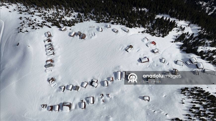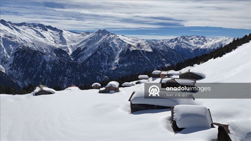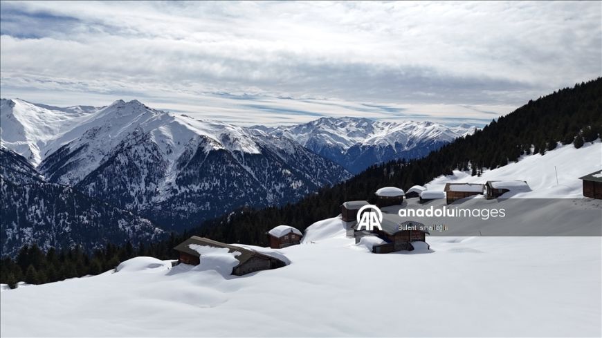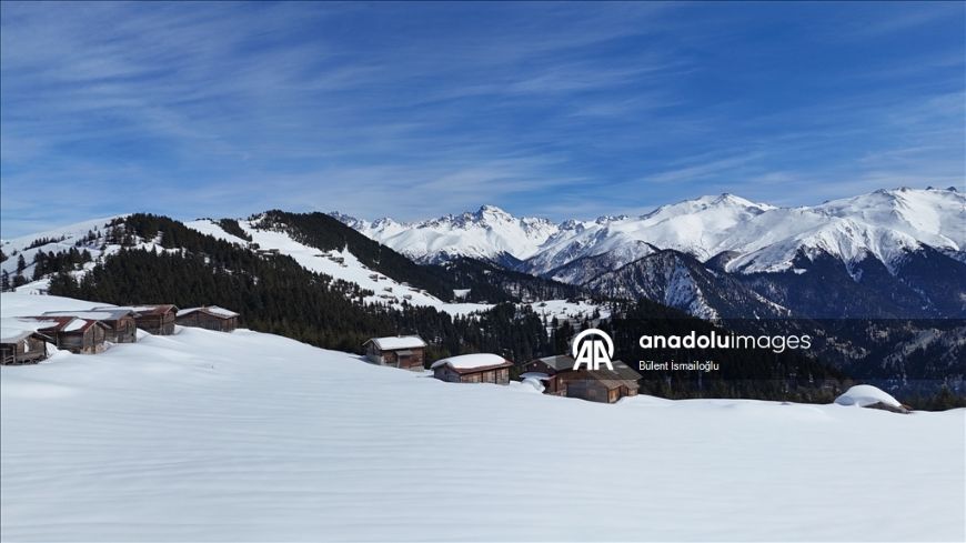 23 февраля, Минск /БЕЛТА - Агентство Анадолу/. Горы Качкар, покрывшиеся белым одеялом после интенсивного снегопада, засняли с дрона.-0-