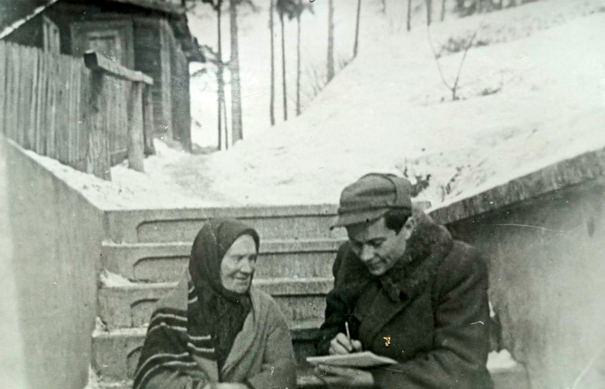 "Узімку 1944/45-га вясковыя артысты прайшлі трыццаць кіламетраў пехатою, каб выступіць у шпіталі ў Баранавічах".
