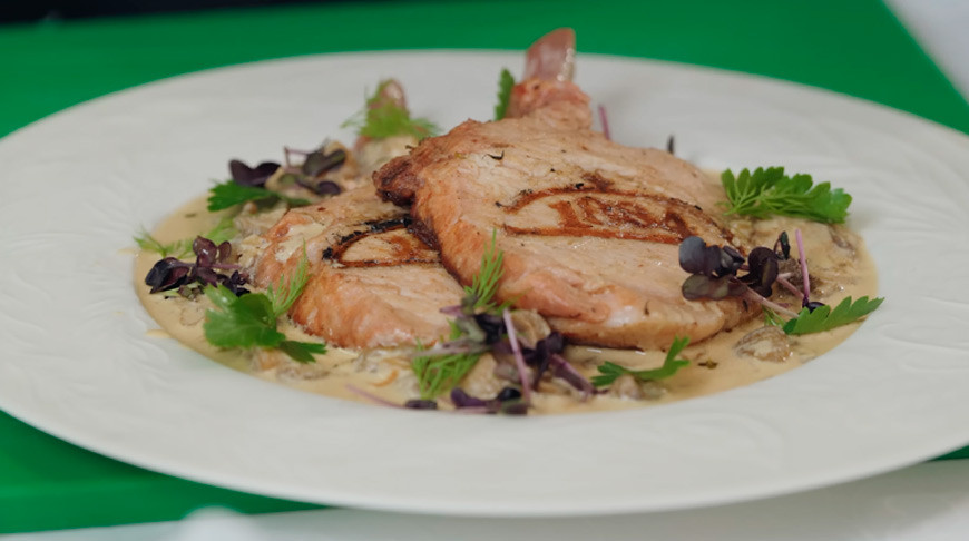Интересно, собирал ли грибы сам Кароль Гуттен-Чапский рядом со своей усадьбой в Станьково? Это место вошло в историю белорусского кинематографа - там снимался один из эпизодов фильма "Дубровский". Это наша третья вкусная тайна.Собираем блюдо: наливаем чуть соуса на тарелку, выкладываем мясо и заполняем оставшееся пространство тем же соусом. Украшаем микрозеленью. Это не только эстетично, но и полезно! Микрозелень содержит больше витаминов, минералов и антиоксидантов, чем зрелые растения. А добавлять ее можно в салаты, супы, смузи, вторые блюда и даже десерты.