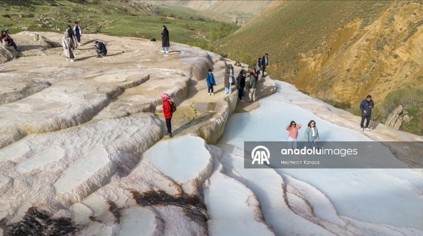 8 мая, Ван /БЕЛТА - Агентство Анадолу/. Травертины (известковые отложения углекислых источников. - Прим. БЕЛТА), расположенные в районе Башкале турецкой провинции Ван и напоминающие один из самых красивых природных памятников Турции - Памуккале, весной становятся местом притяжения для туристов.-0-