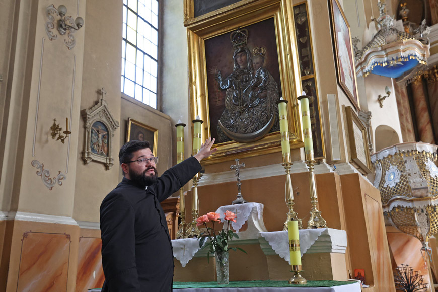 Ксёндз Андрэй Скамарошка: у касцёле Узвышэння Святога Крыжа захоўваецца адзін з самых старадаўніх абразоў Беларусі - цудатворная ікона Маці Божай ЛідскайКсёндз Андрэй лічыць, што чытаць сёння сталі больш. На яго думку, кніга ў руках - гэта прыкмета культурнага, цывілізаванага чалавека. З беларускіх аўтараў ён вылучае Івана Мележа і яго раман "Людзі на балоце": "вельмі прыгожая мова і адчуванне духу часу". Праўда, апошнім часам ксяндзу Андрэю давялося засяродзіцца на рэлігійнай літаратуры, бо пісаў доктарскую дысертацыю, дзе адной толькі бібліяграфіі больш як 20 старонак.