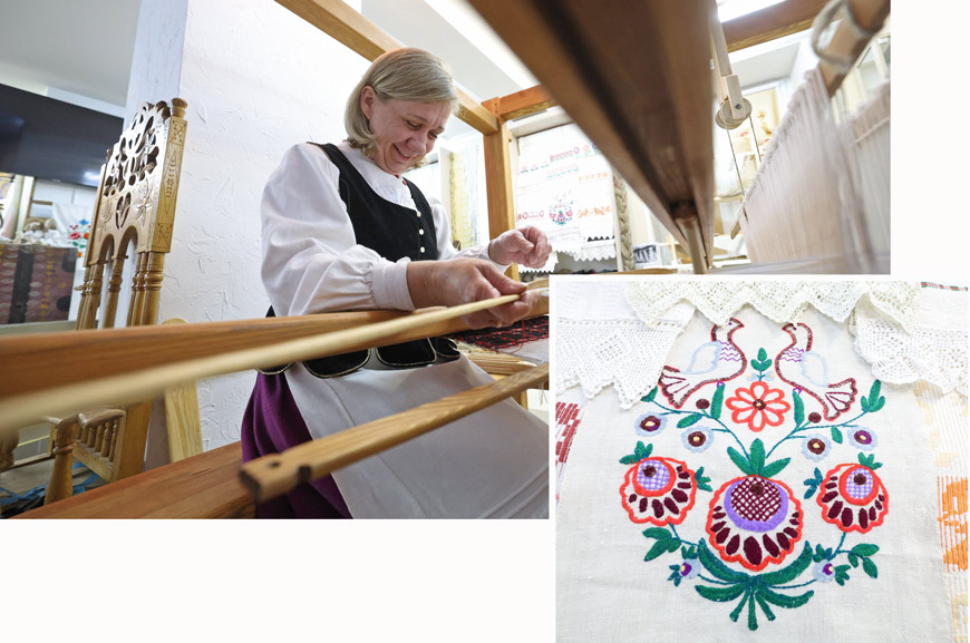 - Ткацтва і выцінанка - асаблівыя для Лідчыны кірункі, - расказвае Алена Шчэліна. - Гэтыя старадаўнія рамёствы развіваюць улюбёныя ў сваю справу і захопленыя майстры. Больш як 10 год працуе ў тэхніцы выцінанкі Дар’я Шапак. Народны майстар Беларусі Валянціна Сільвановіч - галоўны носьбіт элемента "Традыцыйнае белаўзорыстае ткацтва Панямоння", які ўключаны ў Дзяржаўны спіс гісторыка-культурных каштоўнасцей Беларусі. Марыя Шылкоўская вяжа прыгожыя "зубы", карункі да ручнікоў, якія ткуцца. Ручнік без "зубоў" не такі ўпрыгожаны…
