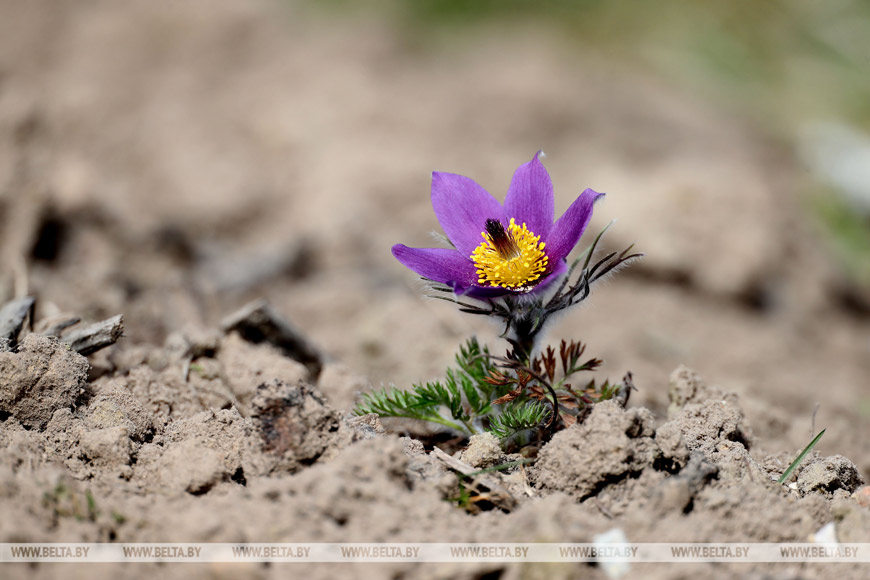 14 апреля 2022 года. Прострел раскрытый или сон-трава - редкий цветок, занесенный в Красную книгу Беларуси.