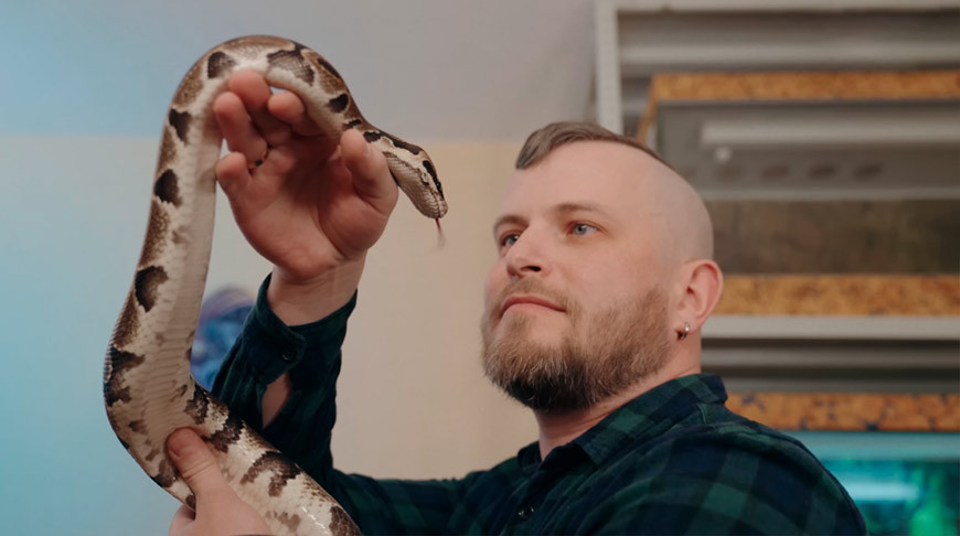 Это очень классный питомец, если задуматься. Во-первых, продолжительность жизни - до 50 лет в неволе. Гипоаллергенный, ни запахов, ни звуков. Не надо выгуливать, беспокоиться. Уход абсолютно минимальный. Кормят взрослых особей раз в 2-3 недели в лучшем случае, и до года они могут не кушать без вреда для здоровья. Если кто-то уезжает в путешествие, не нужно просить родственников приходить и кормить животное. Достаточно, чтобы просто была вода, и довольно долгое время змея может себя прекрасно чувствовать.Змеи любят тепло. В комнате температура +23 °С, к примеру. А они любят, когда градусов 30. Вешаешь змею на себя, на теплые участки, и она так ползает… Чувствуется, что аж балдеет просто от того, что ей приятно и тепло. Может замереть и лежать. То, как змея передвигается по мне, уже вызывает восхищение, потому что это сложно - нет ножек, она просто движется. Как? Понять визуально сложно.