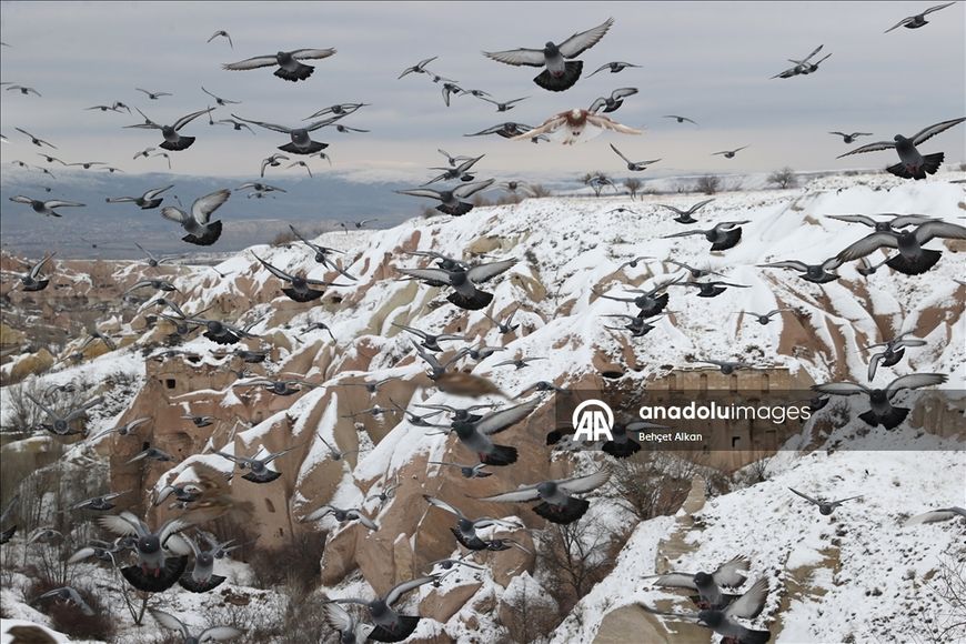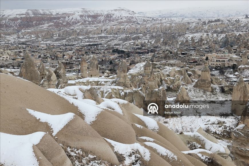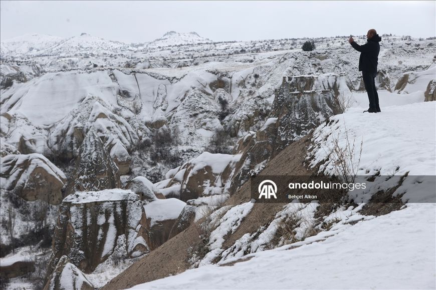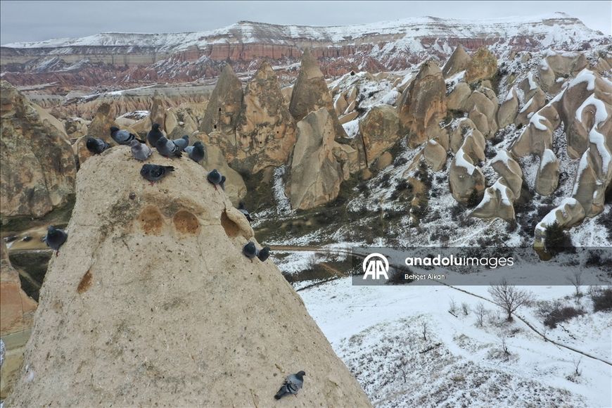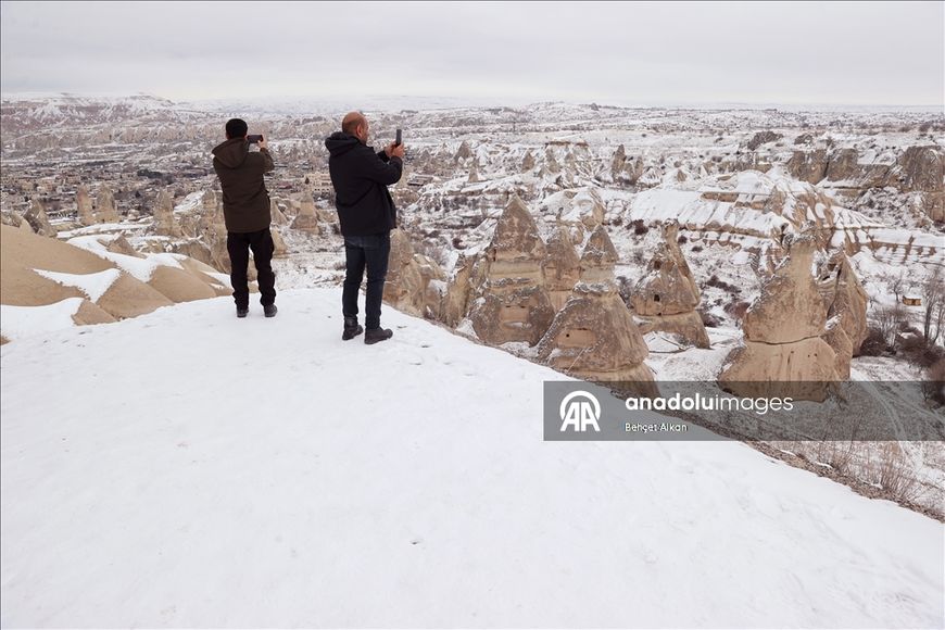 20 января, Минск /БЕЛТА - Агентство Анадолу/. Каппадокия является одним из туристических центров Турции. Она славится уникальными ландшафтами, в том числе "волшебными дымоходами" - скальными образованиями необычной формы. Зимой снег преображает ландшафт Каппадокии - заснеженные дымоходы и причудливые скалы, покрытые белым одеялом, создают неповторимый пейзаж.-0-