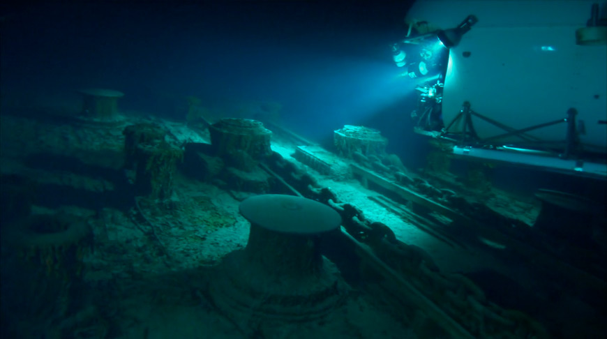 Съемки проходили в августе-сентябре 2001-го. Тогда Кэмерон вместе с группой ученых погрузился к "Титанику" на российских глубоководных аппаратах "Мир-1" и "Мир-2". Помогала им в работе специальная погружная осветительная установка "Медуза". В состав экспедиции входили научное судно базирования "Академик Келдыш" (Российская Федерация) и вспомогательное судно "Эос" (США). Благодаря двум небольшим телеуправляемым подводным аппаратам и специальной технологии CGI зрители могут заглянуть не просто под воду, но и внутрь "Титаника" - вернее того, что от него осталось.