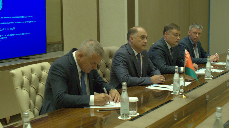 Белорусская делегация прибыла в столицу Узбекистана для участия в 17-й встрече секретарей советов безопасности государств - членов ШОС. В ходе встречи с директором исполнительного комитета РАТС ШОС состоялся обмен мнениями по актуальным вопросам повестки дня постоянно действующего органа Шанхайской организации сотрудничества. Стороны подтвердили заинтересованность активно развивать взаимодействие в целях совершенствования системы международных и межгосударственных мер по борьбе с экстремизмом и терроризмом.