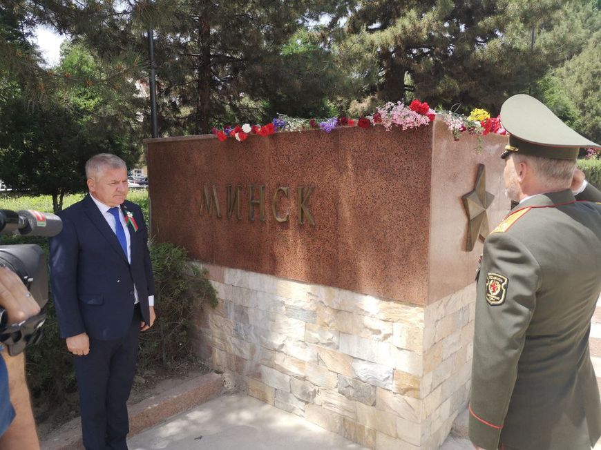 Чрезвычайный и Полномочный Посол Беларуси в Узбекистане Леонид Маринич и сотрудники посольства возложили цветы на мемориальном комплексе "Братские могилы" в Ташкенте. Цветы были возложены к вечному огню, а также к установленным на мемориале стелам "Город-герой Минск" и "Брестская крепость-герой".