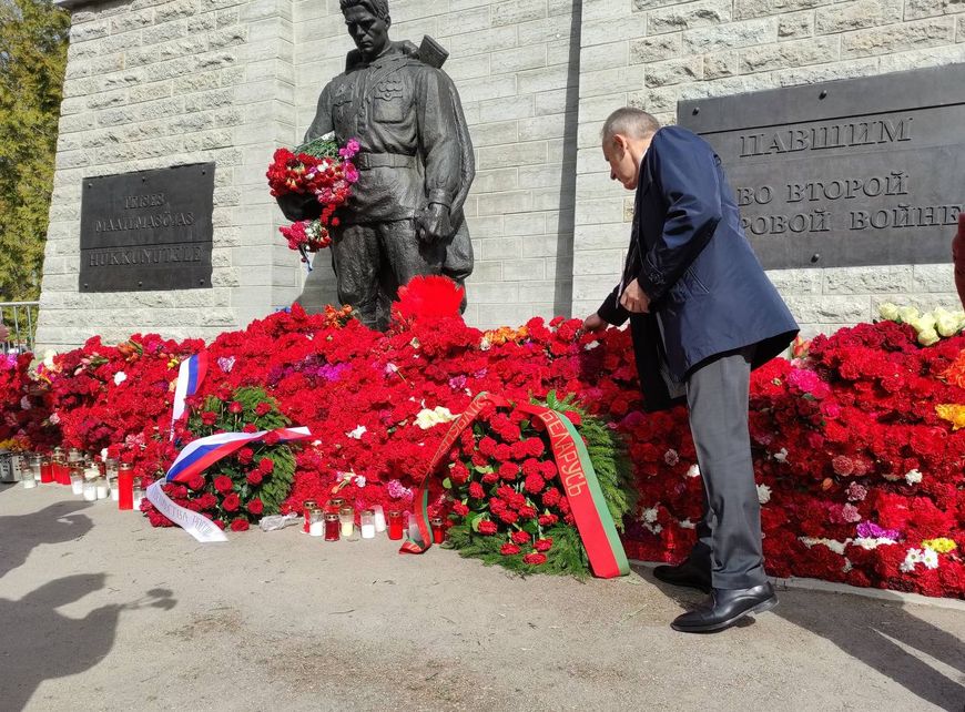 Чрезвычайный и Полномочный Посол Беларуси в Эстонии Вячеслав Качанов и сотрудники загранучреждения приняли участие в торжественной церемонии возложения венков к монументу павшим во время Второй мировой войны (Бронзовому солдату) на военном кладбище Таллина.