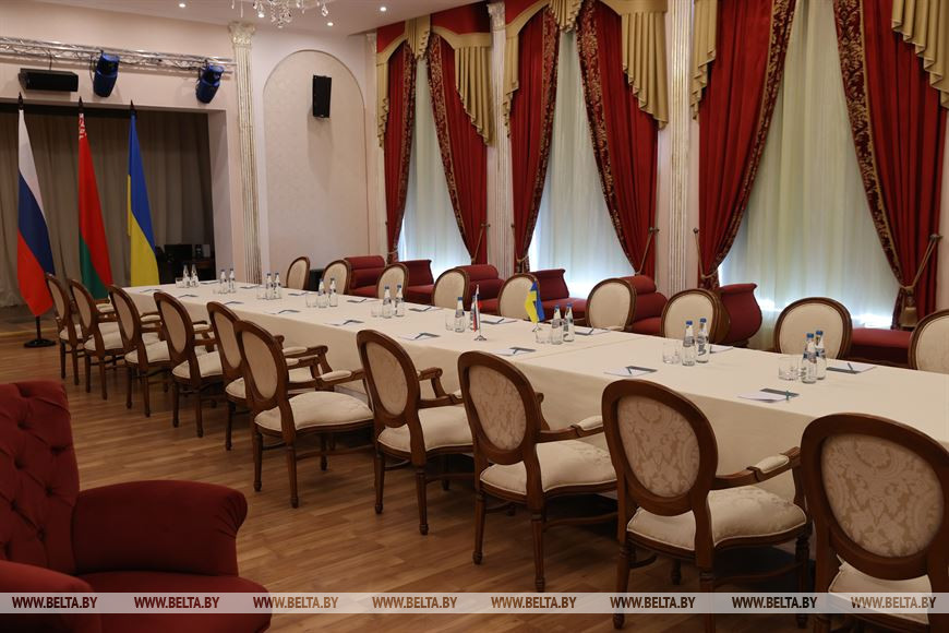 Украинская сторона приземлилась на белорусских военных вертолетах недалеко от места переговоров. Как писали в СМИ, на территорию Беларуси она прибыла со стороны Польши. По предварительной информации, возглавляет делегацию глава фракции правящей партии "Слуга народа" в Верховной раде Давид Арахамия.