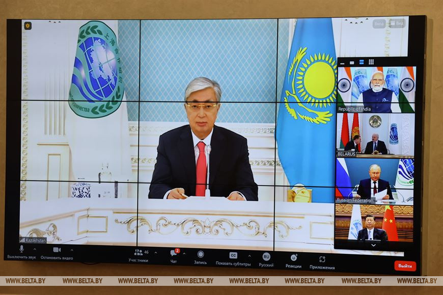 Президент Казахстана поздравил Иран с обретением полноправного членства и отметил, что близится к завершению процесс вступления в ШОС Беларуси. Пользуясь возможностью, казахстанский лидер лично поздравил Президента Беларуси с Днем Независимости, который Беларусь отметила накануне.