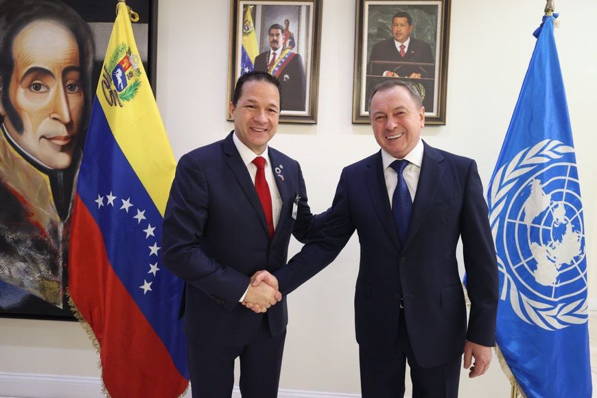 На встрече Владимира Макея с министром иностранных дел Боливарианской Республики Венесуэла Карлосом Рафаэлем Фарией Тортоса стороны подчеркнули важность поддержания положительной динамики, приданной за последнее время двусторонним отношениям. "Подтверждена обоюдная заинтересованность в организации встречи лидеров двух стран, чему должна предшествовать совместная работа по оживлению отраслевого взаимодействия в ключевых сферах сотрудничества", - отметили в МИД. Владимир Макей пригласил венесуэльского коллегу посетить Беларусь с визитом в ближайшее время. Стороны выразили удовлетворение высоким уровнем взаимодействия на многосторонних площадках и подтвердили готовность и далее оказывать взаимную поддержку.
