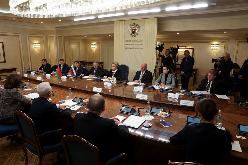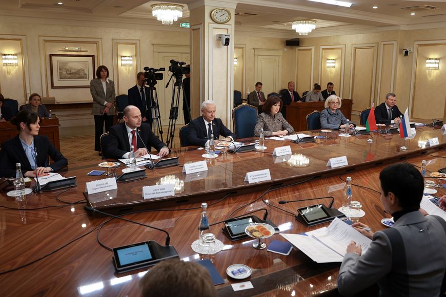 Парламентская делегация Беларуси во главе с председателем Совета Республики Натальей Кочановой 24-25 ноября по приглашению председателя Совета Федерации Федерального Собрания Валентины Матвиенко совершает официальный визит в Российскую Федерацию. Сегодня прошли переговоры в узком и расширенном составах с участием двух спикеров, на которых рассмотрен широкий спектр тем белорусско-российского сотрудничества.