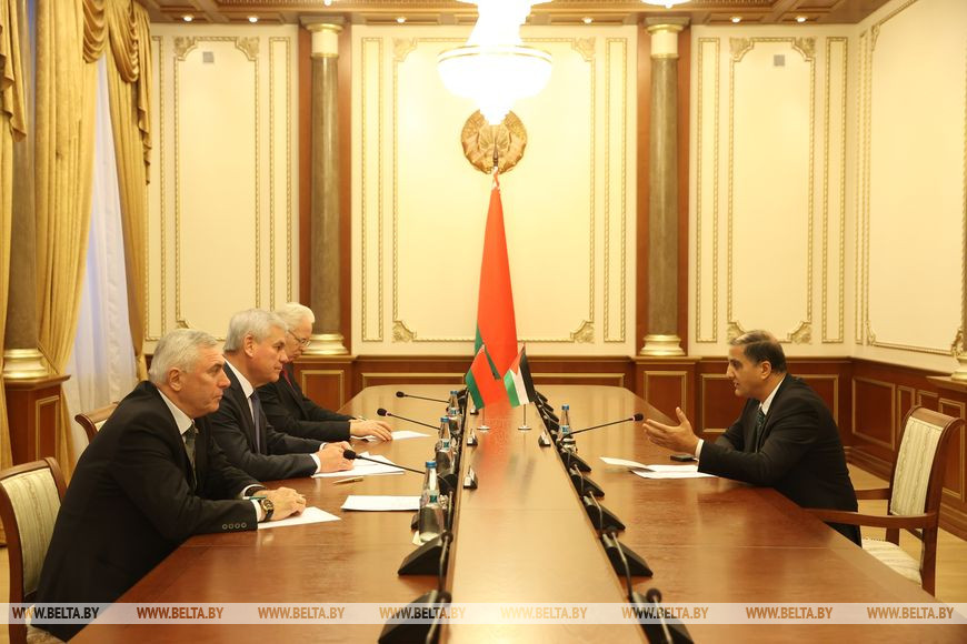 "В Беларуси у меня есть все полномочия, чтобы развивать наши отношения не только в политическом плане, но и других аспектах жизнедеятельности, - сказал Ахмед Мохаммед Алмадбух. - Вы говорили о медицине. В этом году число студентов, обучавшихся в Беларуси, выросло. В плане здравоохранения мы тоже заинтересованы в сотрудничестве. Я связался с вашим Министерством здравоохранения, и есть заинтересованность, чтобы провести обмен опытом и сотрудничеством между нашими министерствами, медучреждениями и врачами. Мы можем помочь друг другу в этом плане. Мы также заинтересованы, чтобы строительные компании Беларуси приезжали к нам и участвовали в строительстве объектов".