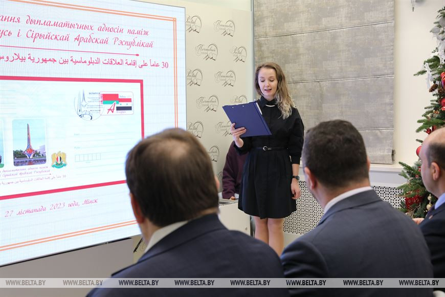27 ноября, Минск /Корр. БЕЛТА/. Беларусь и Сирия создали прочный фундамент взаимоотношений. Об этом заявил заместитель министра иностранных дел Беларуси Евгений Шестаков на церемонии гашения почтового конверта с маркой по случаю 30-летия установления дипломатических отношений между Республикой Беларусь и Сирийской Арабской Республикой, сообщает корреспондент БЕЛТА.