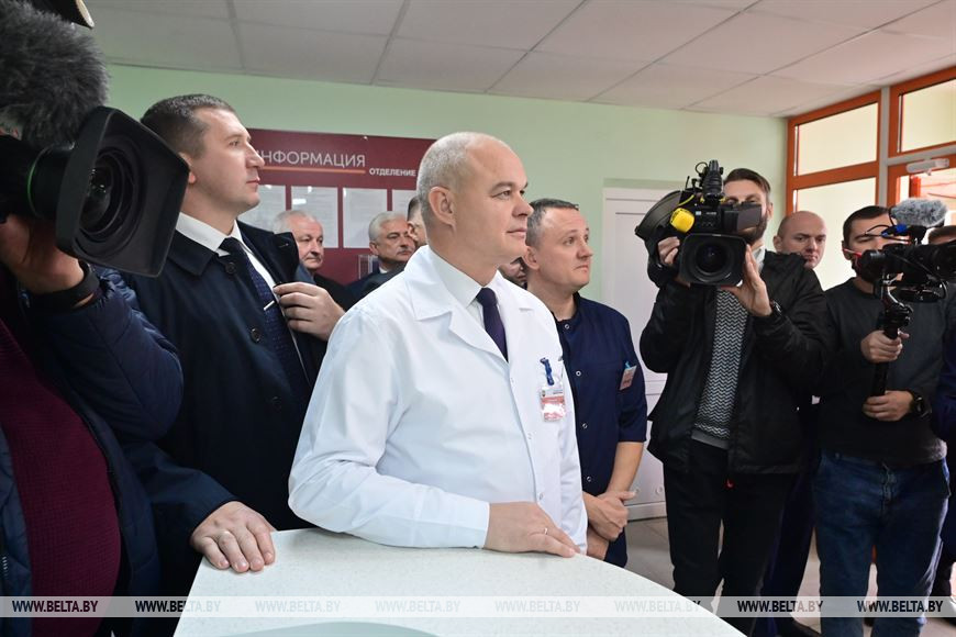 Президент ознакомился с работой Островецкой центральной районной клинической больницы. Главврач Владимир Можейко подробно проинформировал Президента о деятельности учреждения.