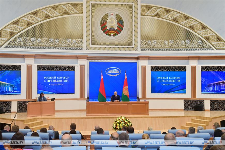 9 августа, Минск /Корр. БЕЛТА/. Во Дворце Независимости 9 августа состоялся "Большой разговор с Президентом". Встреча главы государства Александра Лукашенко с представителями общественности, экспертного и медийного сообщества длилась около 8 часов 15 минут, сообщает корреспондент БЕЛТА.