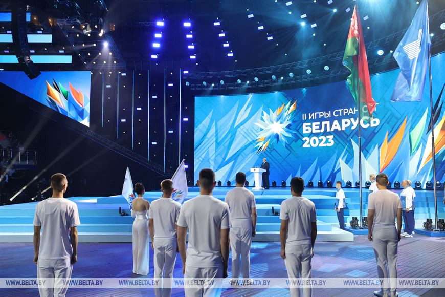 "Посмотрите. Здесь собрались тысячи. Трансляцию смотрят миллионы. Все увидят не только нашу прекрасную Беларусь, но и культуру тех 20 стран, которые представлены ведущими спортсменами. Вы увидите традиции, героическую историю Беларуси, которая характерна для всех стран Содружества. Вы убедитесь, что Беларусь обладает великолепной чарующей природой. Все увидят современные арены, сильных атлетов, яркие поединки и новые рекорды, а главное - большой международный интерес к этим Играм. К нам приехали свыше двух тысяч спортсменов из более чем двадцати стран разных континентов. Никакие санкции, никакие политические интриги не лишат нас этого праздника. Это невозможно. Мир тесен, взаимозависим, взаимоувязан. И только безумцы пытаются разорвать эти связи", - подчеркнул белорусский лидер.-0-