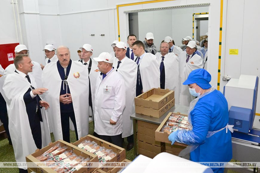 Посещая в районе объекты агрокомбината "Дзержинский", Александр Лукашенко ознакомился с производственными возможностями предприятия и перспективами его развития. Как рассказал генеральный директор агрокомбината Владимир Лукьянов, запланировано строительство новых молочнотоварных ферм, завода по переработке непищевого животного сырья, объектов по выращиванию мяса индейки.