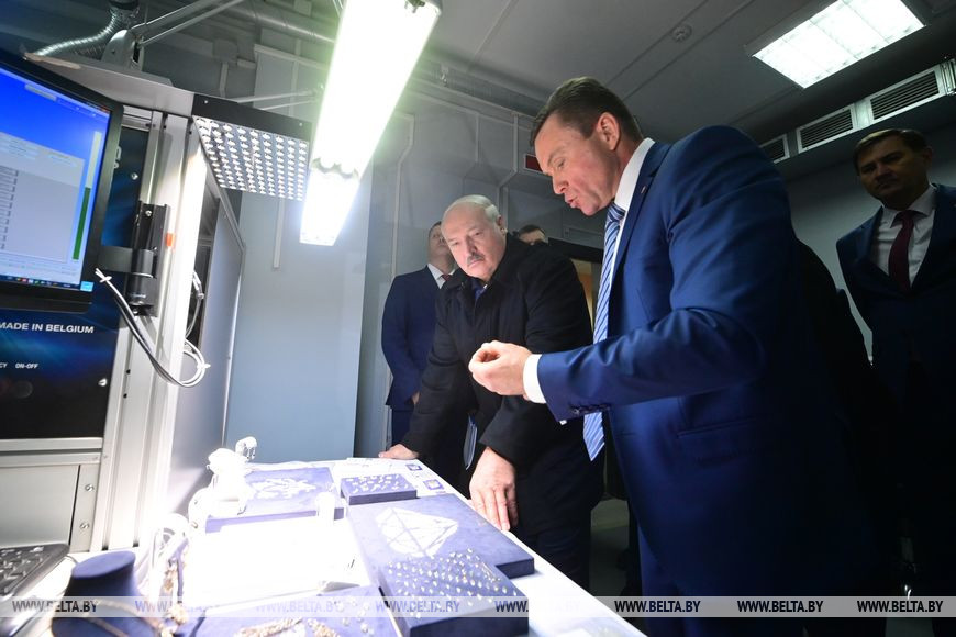 "Давно планировал к вам приехать. Не потому, что вы делаете такую красотищу, - в мире красивее ничего, наверное, не делают искусственного. Самое красивое, я считаю, в мире - это женщина. А украшают женщину (я не считаю так, но сами женщины так считают) бриллианты, золото и прочее. Я спокойно отношусь к этим вещам. Никогда не имел их. Для меня это как сырье и готовое изделие. Но всегда рад, если наши женщины будут красивее выглядеть с этими изделиями", - отметил Александр Лукашенко.