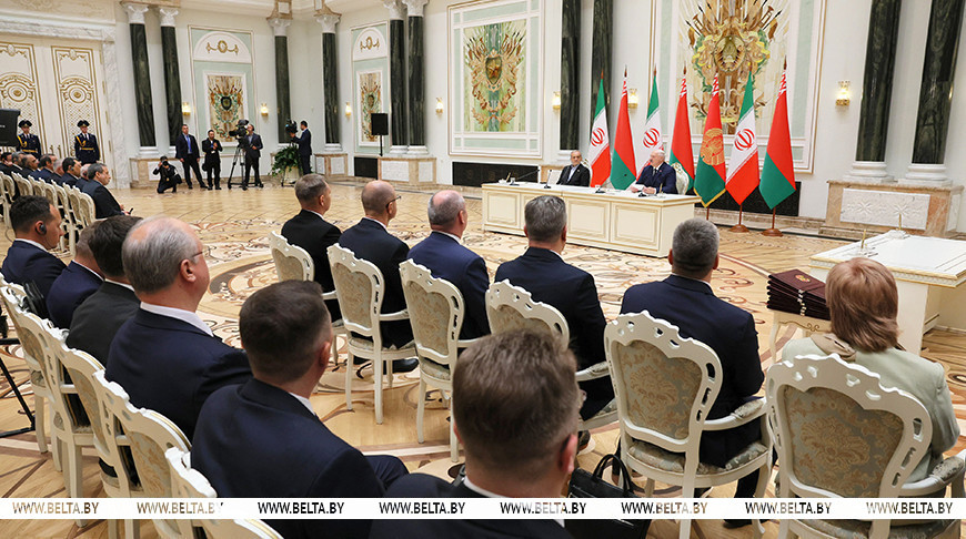 20 августа, Минск /Корр. БЕЛТА/. Беларусь поддерживает легитимное право Ирана на развитие мирного атома. Об этом Президент Беларуси Александр Лукашенко заявил журналистам 20 августа по итогам переговоров с Президентом Ирана Масудом Пезешкианом, передает корреспондент БЕЛТА.