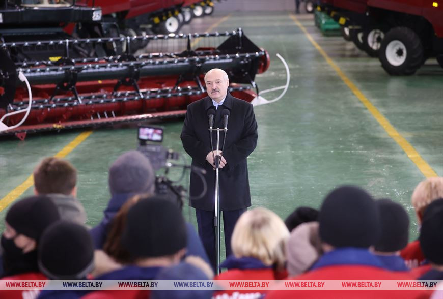 Александр Лукашенко вспомнил, что в начале становления Беларуси как независимого государства, ему как руководителю неоднократно предлагали свернуть отрасль машиностроения и закупать комбайны для сельского хозяйства, которых тогда крайне не хватало, за границей. "Вот тогда был главный вопрос, что делать с "Гомсельмашем"? Будем мы производить свои зерно- и кормоуборочные комбайны? - напомнил он. - И тогда мы приняли решение: будем делать свой комбайн".