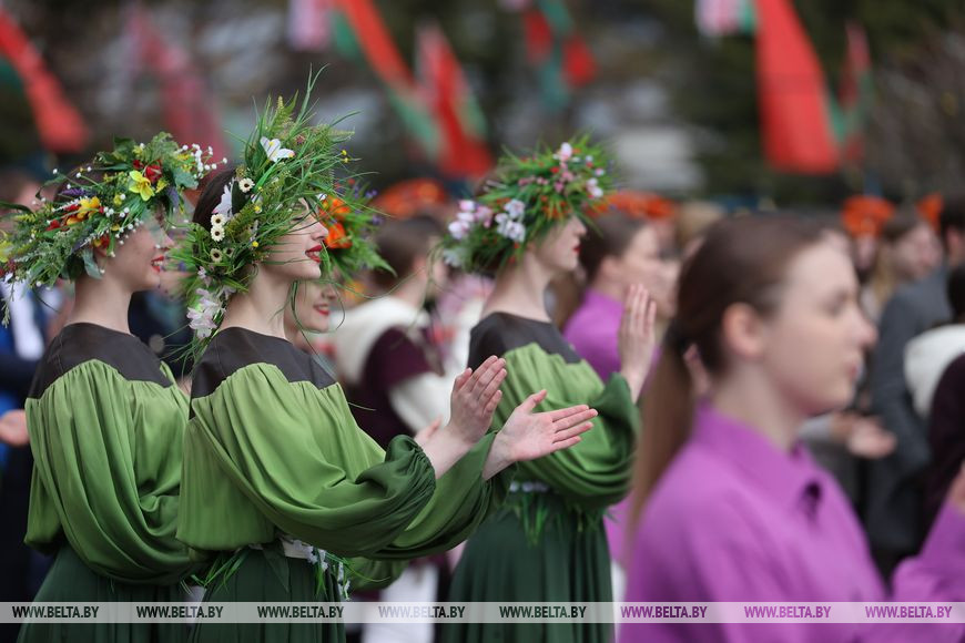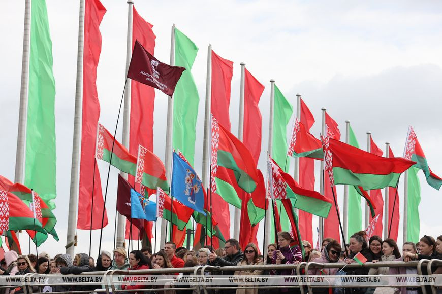 Президент отметил, что зарождение этих символов произошло в недрах народной культуры в эпоху глобальных потрясений и ломки мирового порядка. С этими символами родились и выросли поколения людей, связанных исторической памятью, которая и сегодня, в самые острые периоды, помогает продолжать выбранный народом путь, преодолевая вызовы и преграды, обратил внимание Президент. "Так было в 1990-х, когда белорусы отвергли попытки подогнать свой уклад жизни под западноевропейский стандарт, сохранили верность традициям, сберегли национальное богатство: отечественные предприятия, землю, а также право на социальную справедливость, - пояснил он. - Так было в 2020-м, когда мы не дали истории повториться, защитив свой выбор, свои ценности, свои флаг и гимн".-0-