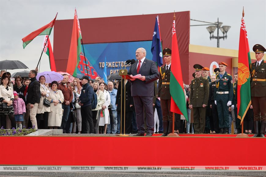 Александр Лукашенко подчеркнул, что во имя тех, кто заплатил за будущее суверенной Беларуси и ее народа своей жизнью, современные белорусы, наследники победителей, делают все, чтобы в безумных головах, пораженных идеями нацизма, даже мысли не возникло возродить их на святой белорусской земле.