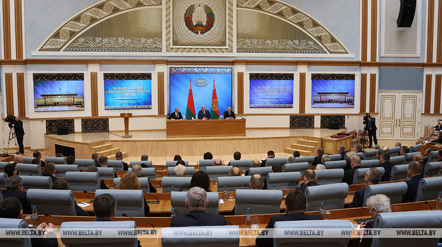 Президент заявил, что хочет и в послании в том числе осветить историческую тему и обретение Беларусью независимости: "Говорят, в 90-е годы независимость досталась нам случайно, просто так, вот с неба свалилась. Как-то и я был увлечен этой практической теорией. А потом подумал: сколько веков, сколько поколений белорусов легло за эту независимость 90-х годов! Она не случайная. Может, в какой-то степени бог нам и помог в этом плане. Но сколько мы положили людей, сколько поколений!"