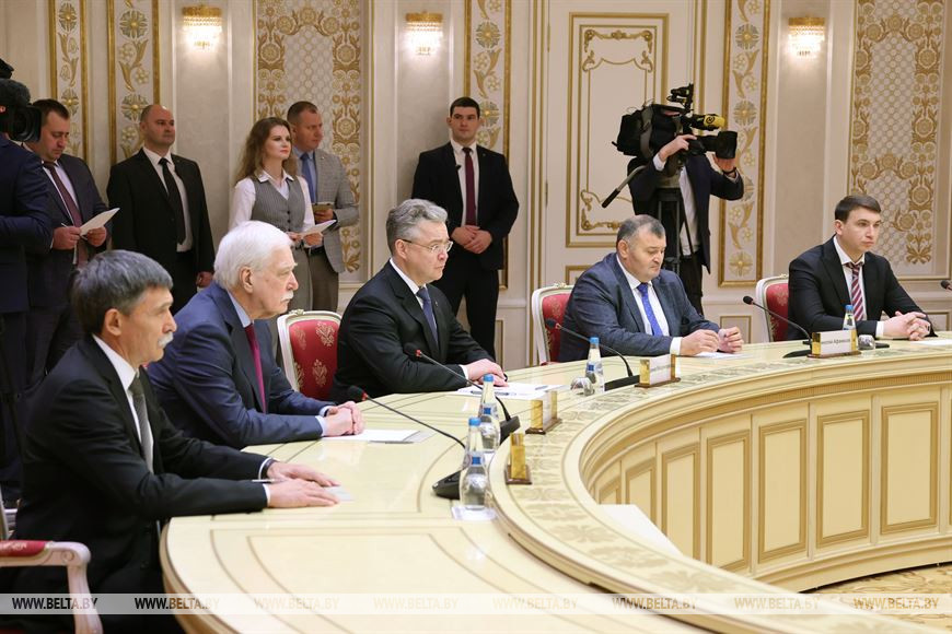 8 ноября, Минск /Корр. БЕЛТА/. Президент Беларуси Александр Лукашенко на встрече с губернатором Ставропольского края России Владимиром Владимировым обратил внимание на значительный незадействованный потенциал для расширения сотрудничества с этим регионом, передает корреспондент БЕЛТА.